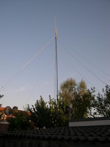 Two inverted-V's, one for 20m, one for 40m with a bright yellow J-pole for 2 meters op top.